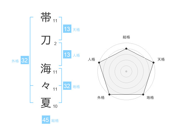 帯刀 海々夏さんを姓名の画数から五運を鑑定