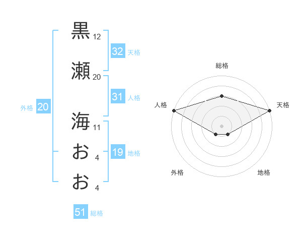 黒瀬 海おおさんの総格は51画の3点!
