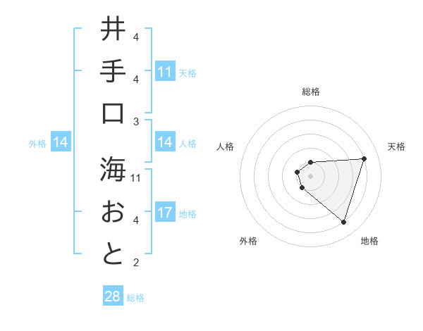 井手口 海おとさんを姓名の画数から五運を鑑定