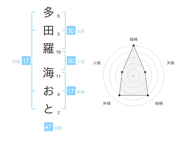 多田羅 海おとさんを姓名の画数から五運を鑑定