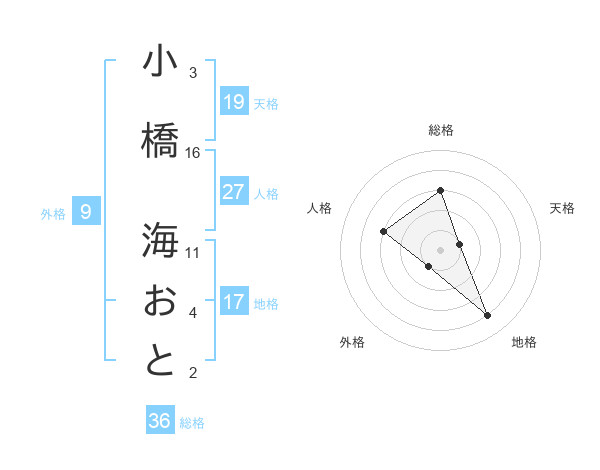 小橋 海おとさんを姓名の画数から五運を鑑定