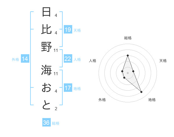 日比野 海おとさんを姓名の画数から五運を鑑定