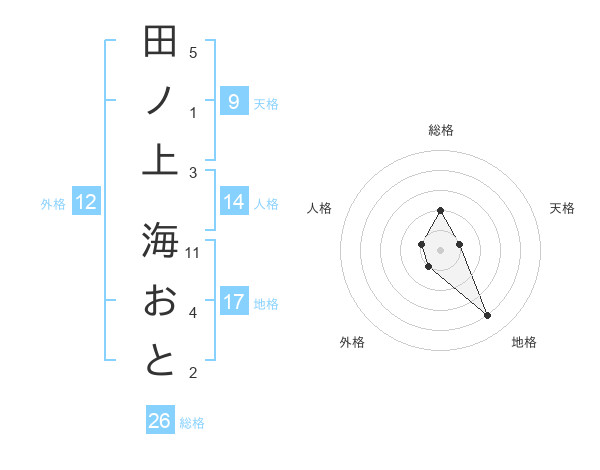 田ノ上 海おとさんを姓名の画数から五運を鑑定