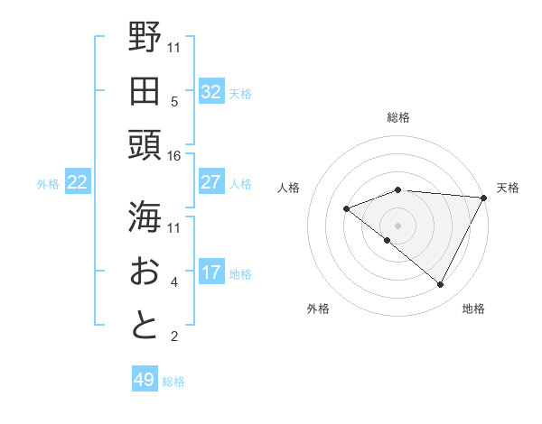 野田頭 海おとさんを姓名の画数から五運を鑑定