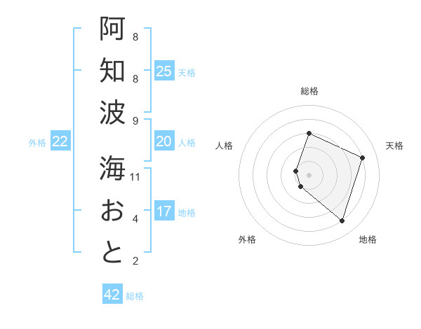 阿知波 海おとさんを姓名の画数から五運を鑑定
