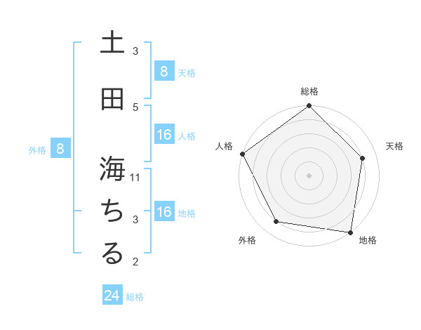 土田 海ちるさんを姓名の画数から五運を鑑定