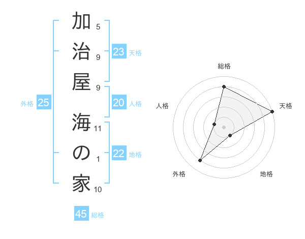 加治屋 海の家さんの天格は23画の5点!