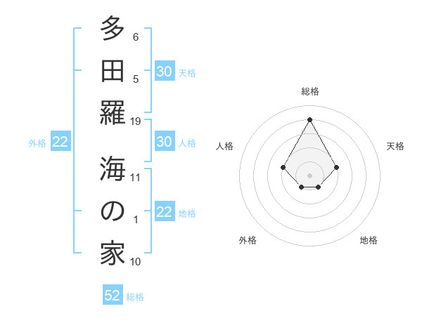 多田羅 海の家さんを姓名の画数から五運を鑑定