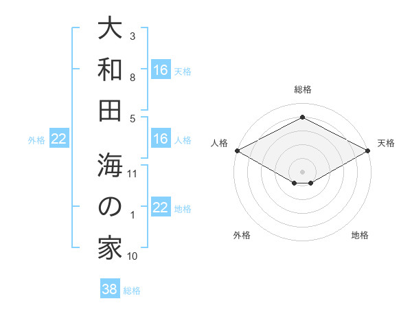 大和田 海の家さんを姓名の画数から五運を鑑定