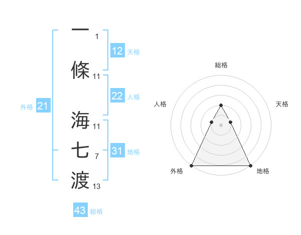 一條 海七渡さんを姓名の画数から五運を鑑定