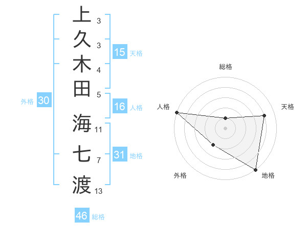 上久木田 海七渡さんを姓名の画数から五運を鑑定