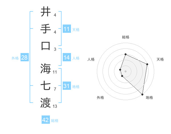 井手口 海七渡さんを姓名の画数から五運を鑑定