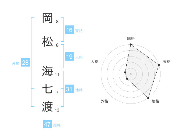 岡松 海七渡さんを姓名の画数から五運を鑑定