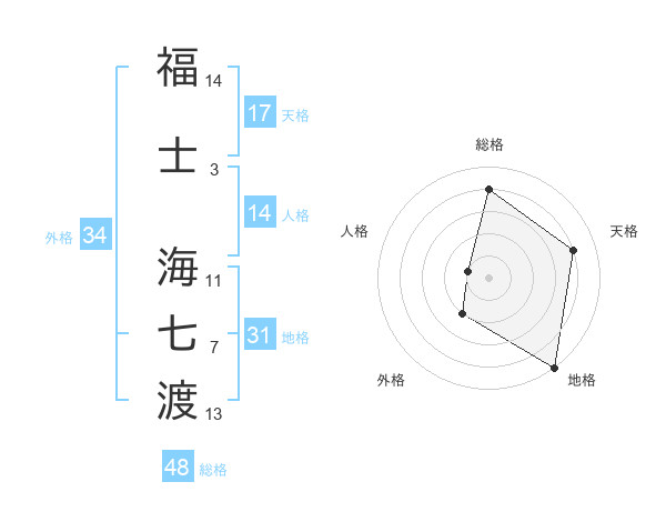 福士 海七渡さんを姓名の画数から五運を鑑定