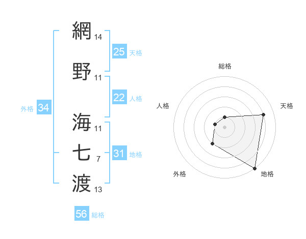 網野 海七渡さんを姓名の画数から五運を鑑定