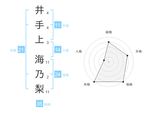 井手上 海乃梨さんの総格は35画の4点!