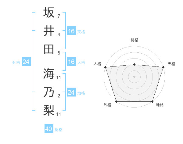 坂井田 海乃梨さんを姓名の画数から五運を鑑定