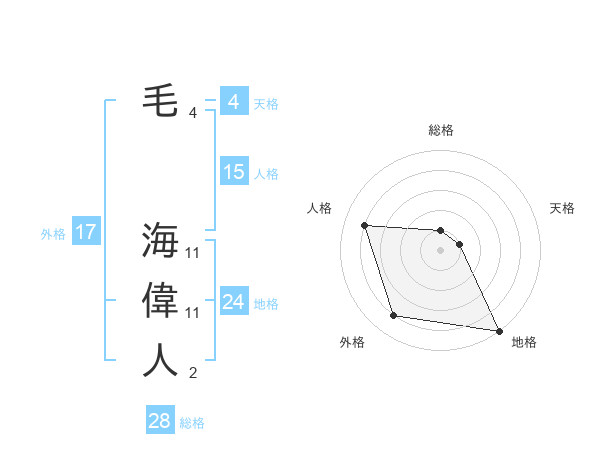 毛 海偉人さんを姓名の画数から五運を鑑定