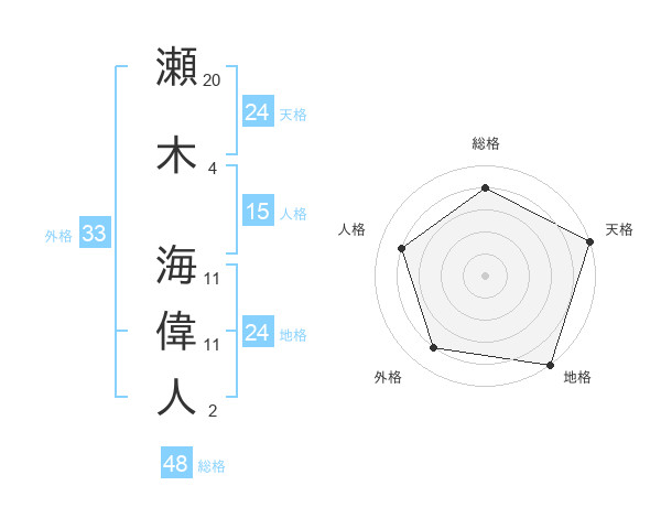 瀬木 海偉人さんを姓名の画数から五運を鑑定