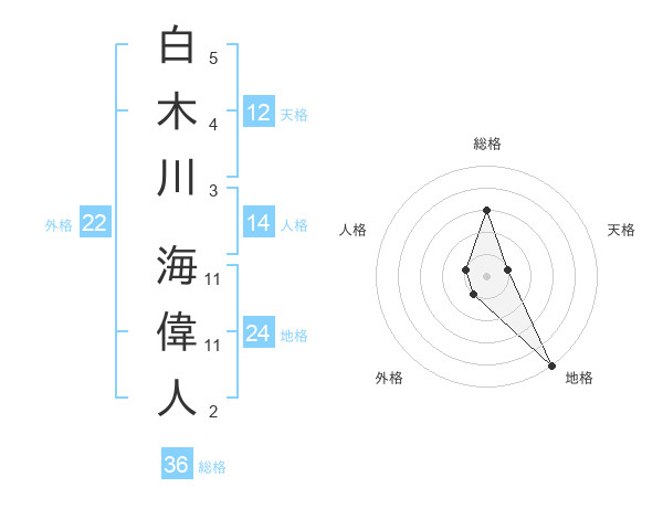 白木川 海偉人さんを姓名の画数から五運を鑑定