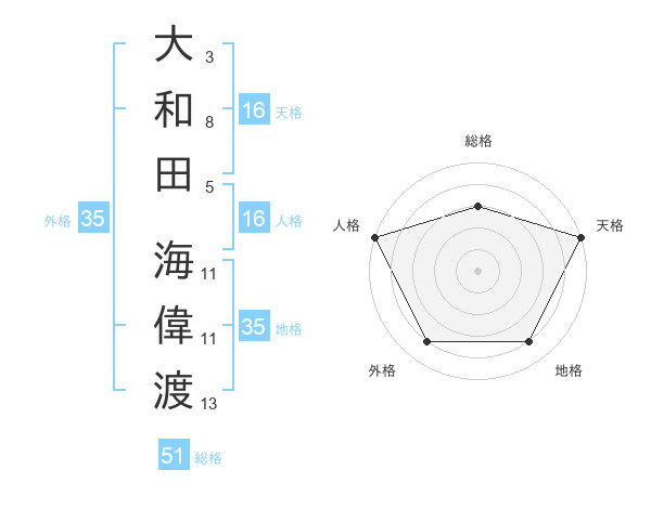 大和田 海偉渡さんを姓名の画数から五運を鑑定