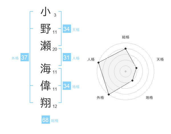 小野瀬 海偉翔さんの人格は31画の5点!