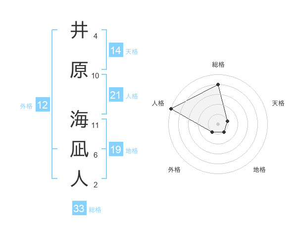 井原 海凪人さんの総格は33画の4点!