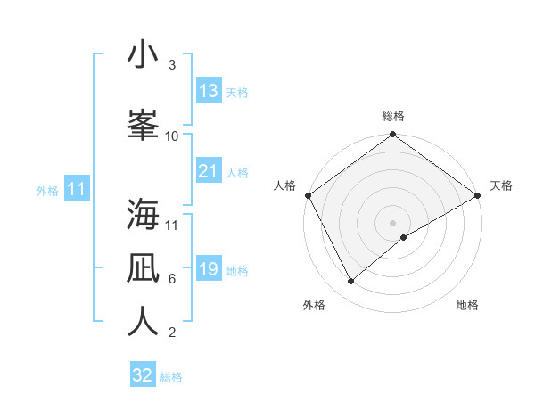 小峯 海凪人さんの総格は32画の5点!