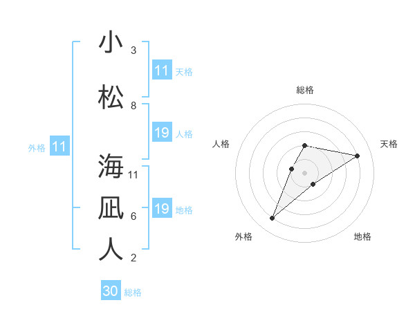 小松 海凪人さんの外格は11画の4点!