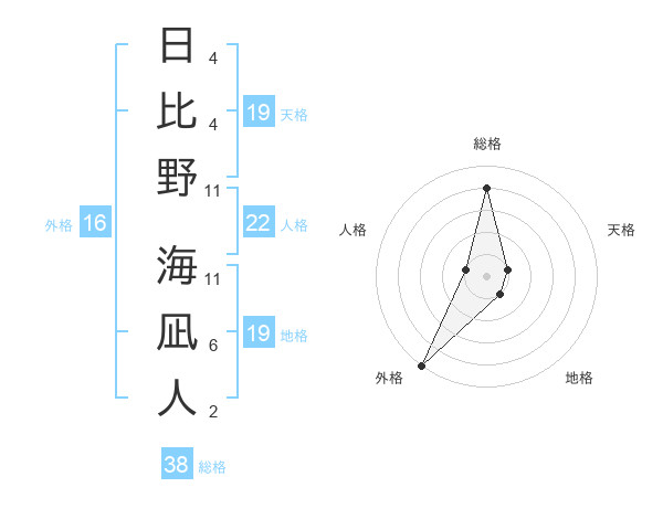 日比野 海凪人さんの総格は38画の4点!