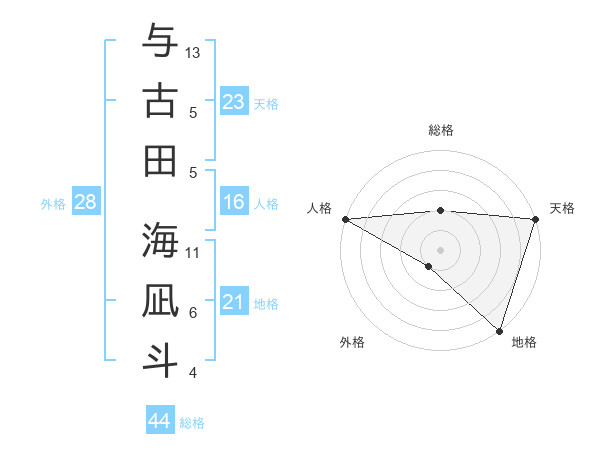 与古田 海凪斗さんを姓名の画数から五運を鑑定