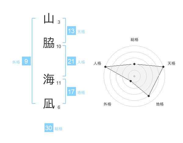山脇 海凪さんを姓名の画数から五運を鑑定