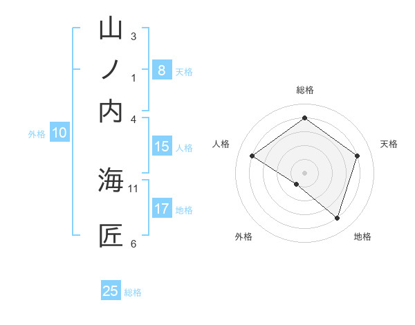 山ノ内 海匠さんを姓名の画数から五運を鑑定