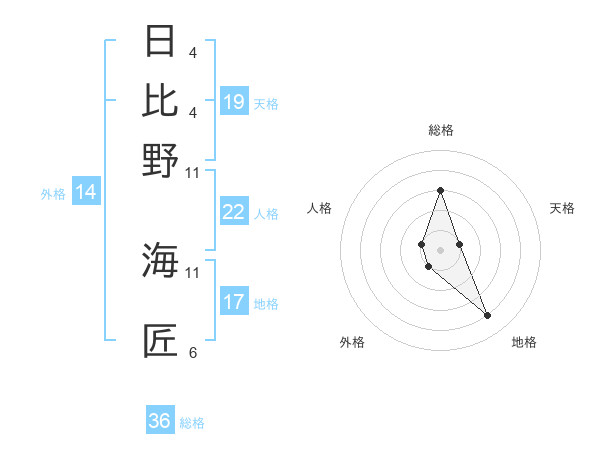 日比野 海匠さんを姓名の画数から五運を鑑定