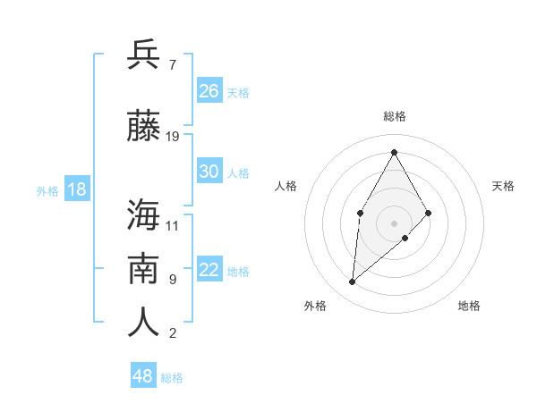 兵藤 海南人さんを姓名の画数から五運を鑑定