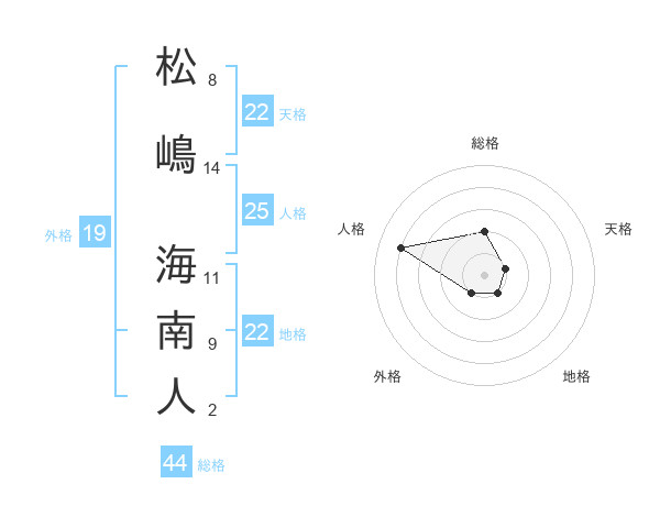 松嶋 海南人さんを姓名の画数から五運を鑑定