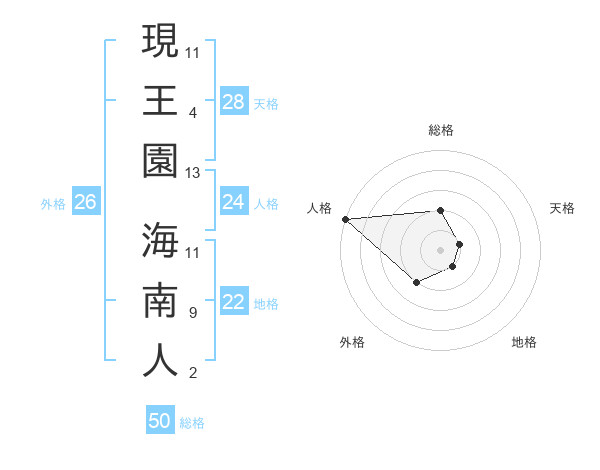 現王園 海南人さんを姓名の画数から五運を鑑定