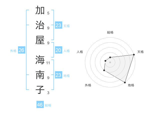 加治屋 海南子さんを姓名の画数から五運を鑑定
