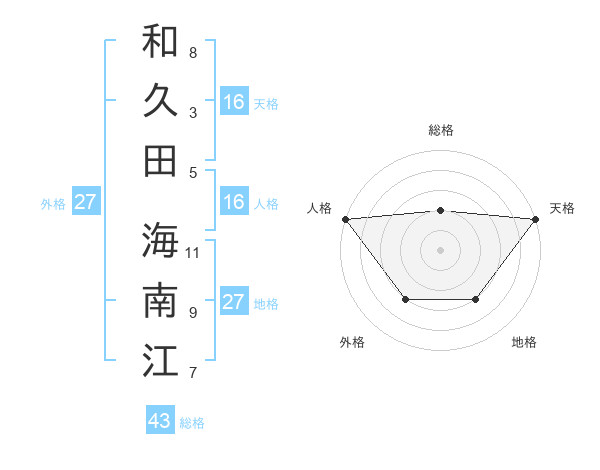 和久田 海南江さんを姓名の画数から五運を鑑定