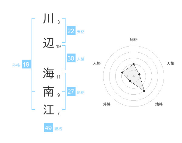 川辺 海南江さんの天格は22画の1点!