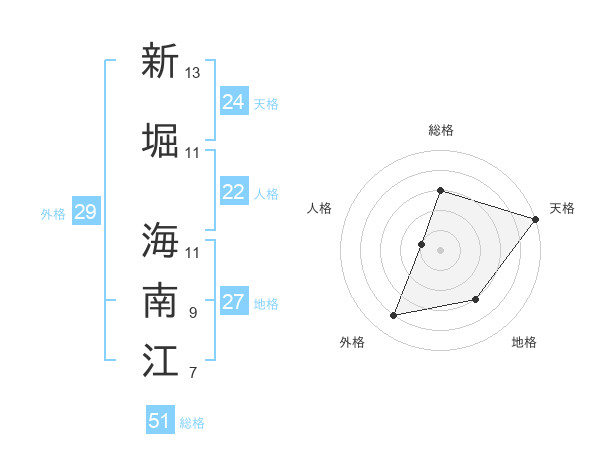 新堀 海南江さんの総格は51画の3点!