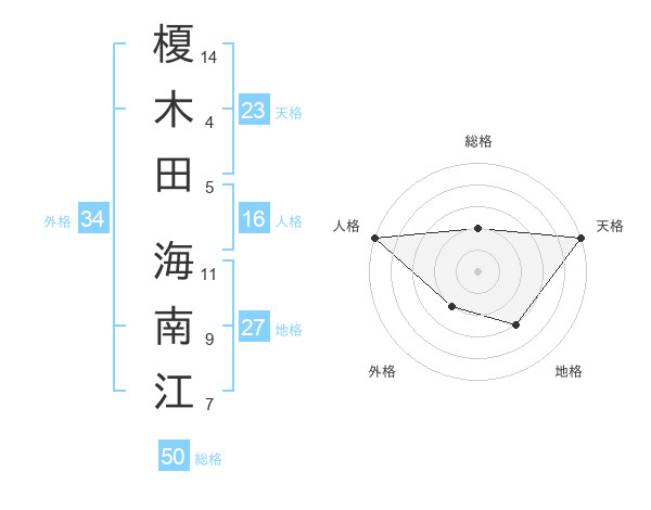 榎木田 海南江さんを姓名の画数から五運を鑑定