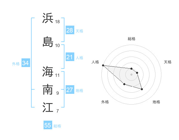 浜島 海南江さんを姓名の画数から五運を鑑定