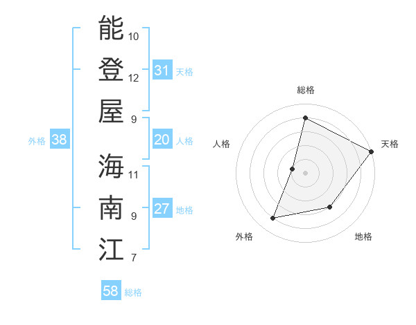 能登屋 海南江さんを姓名の画数から五運を鑑定