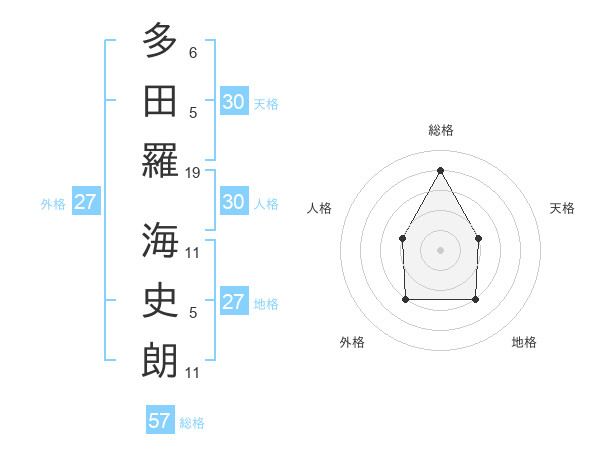 多田羅 海史朗さんを姓名の画数から五運を鑑定