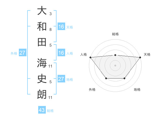 大和田 海史朗さんを姓名の画数から五運を鑑定