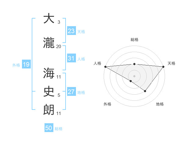 大瀧 海史朗さんを姓名の画数から五運を鑑定