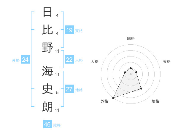 日比野 海史朗さんを姓名の画数から五運を鑑定