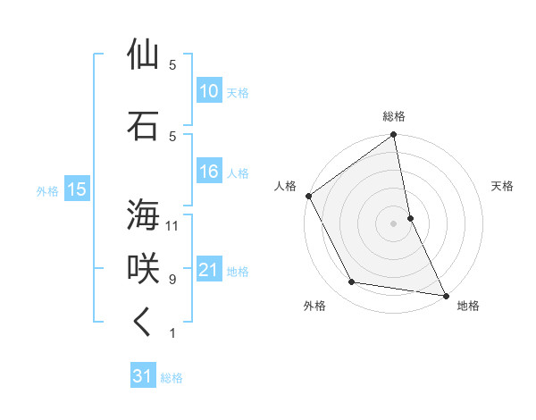 仙石 海咲くさんを姓名の画数から五運を鑑定