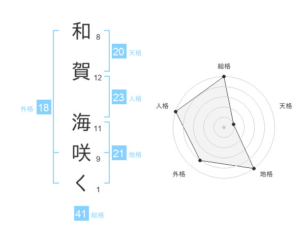 和賀 海咲くさんを姓名の画数から五運を鑑定